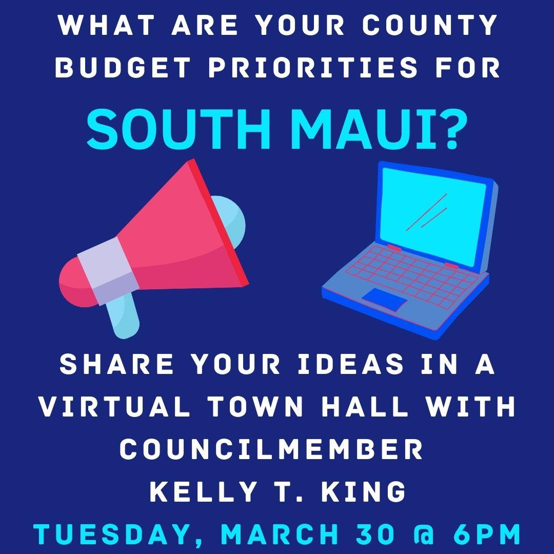 If you want to try to get some county government spending actions in South Maui, here’s a way to start the process. Mayor’s budget shows no major spending for our community.